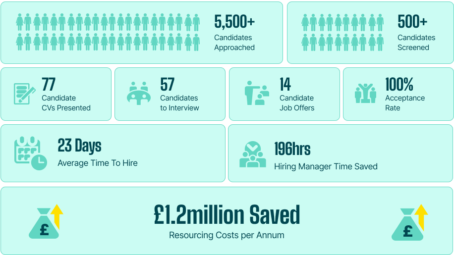 The solution we delivered here is called a Project RPO. This is a flexible recruitment solution that offers many of the benefits of outsourcing recruitment to a resourcing partner, but without the long-term commitment. You can find out more about Project RPO here.